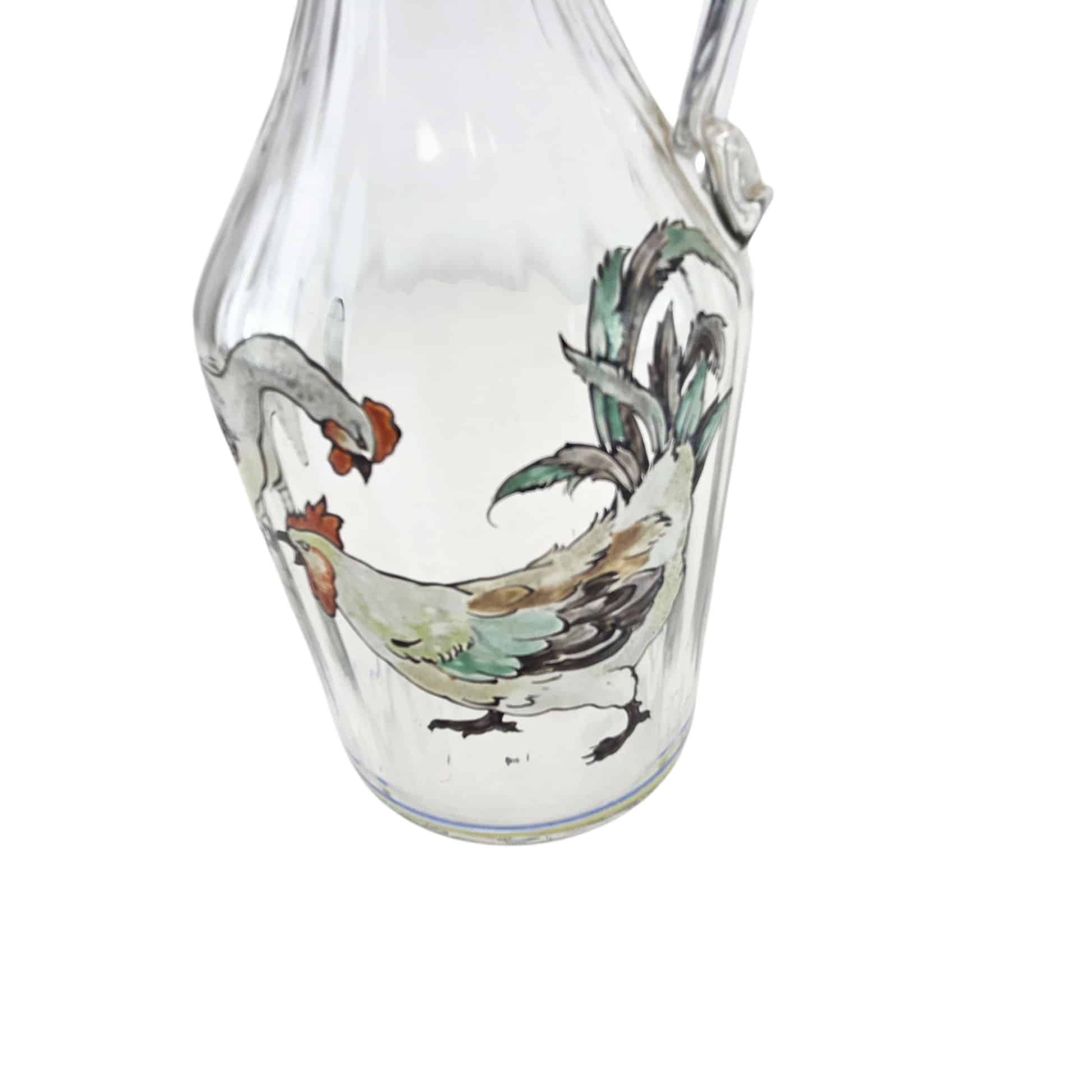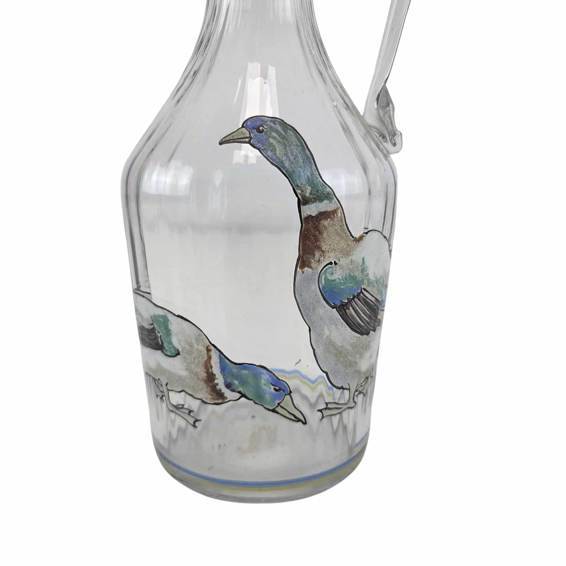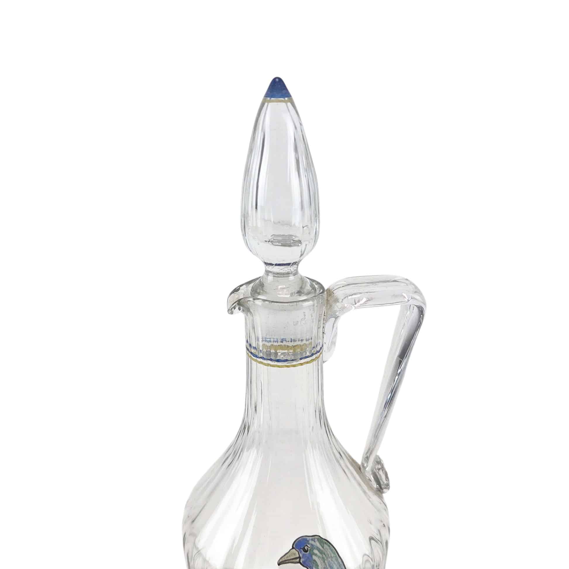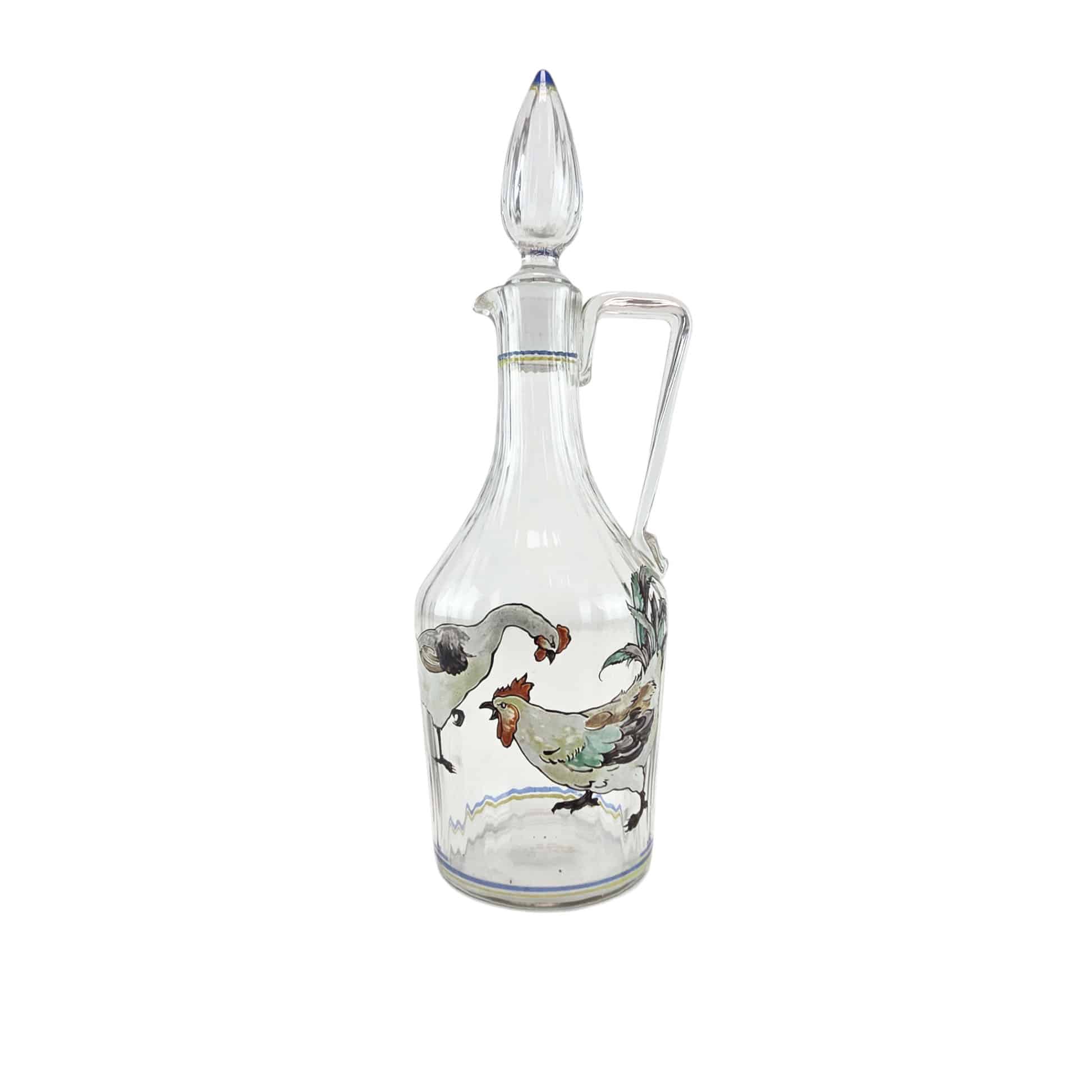 Adorable paire de carafons en verre émaillé, fin XIXème à décor de volatiles.