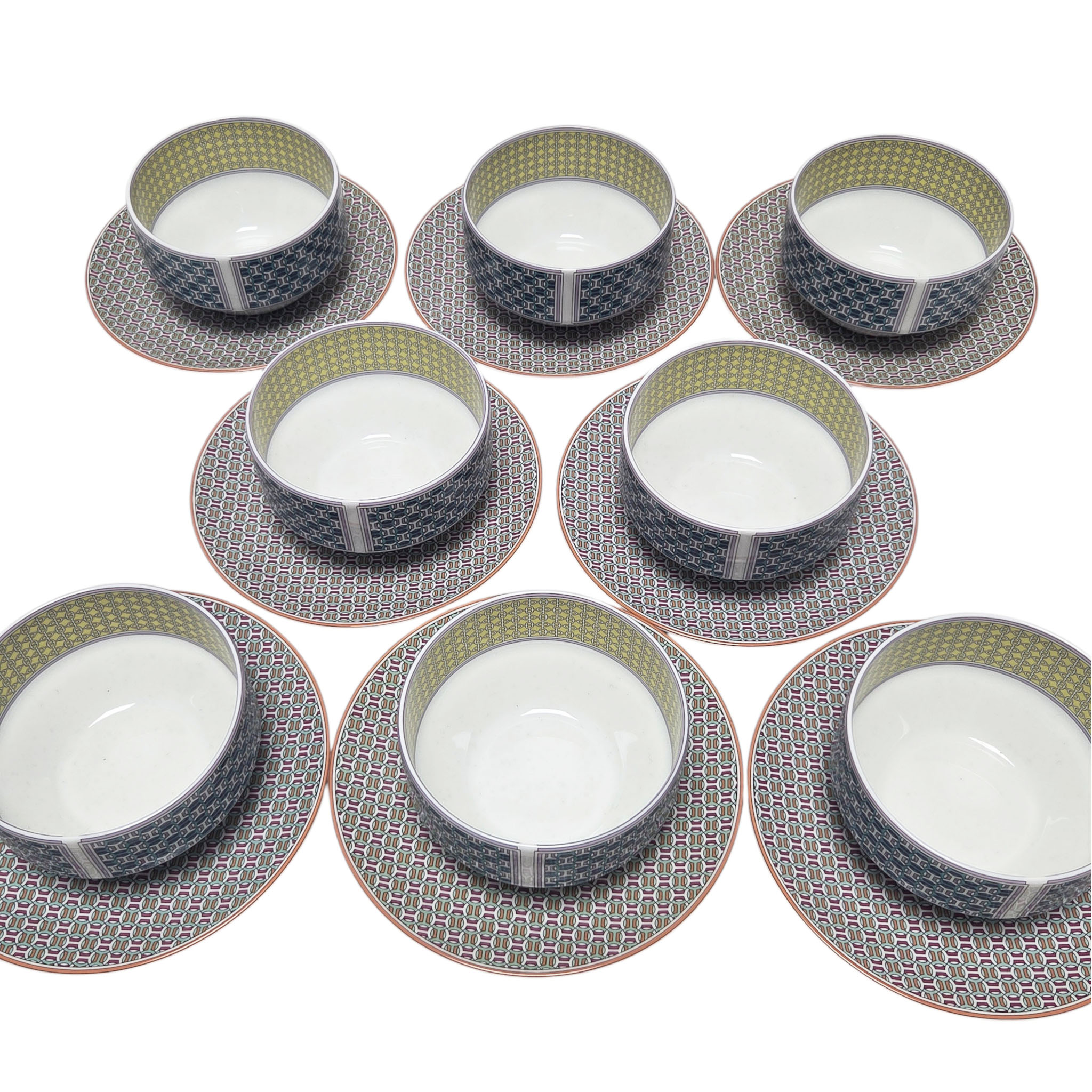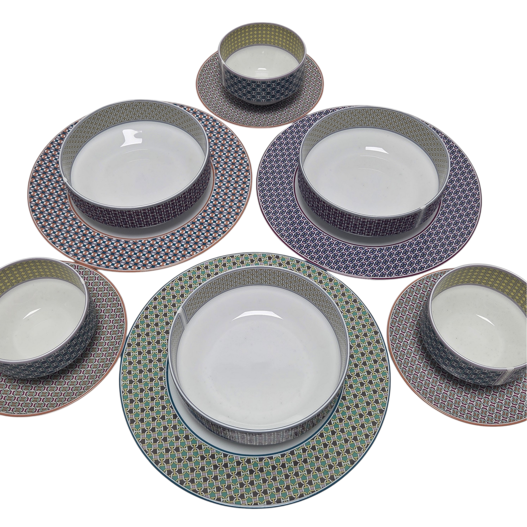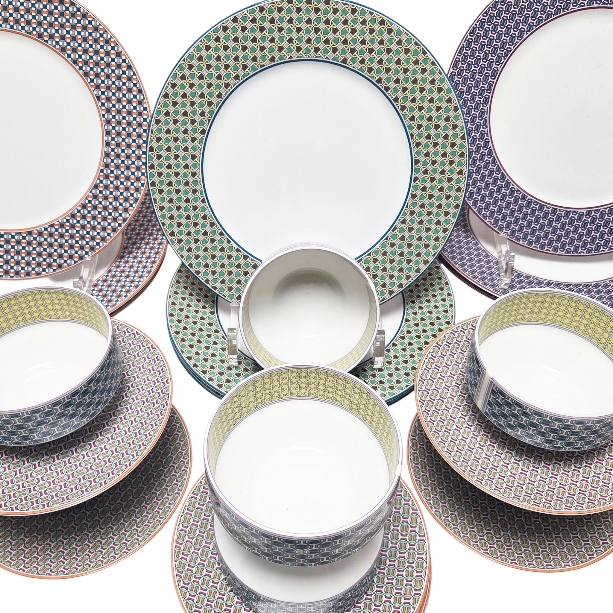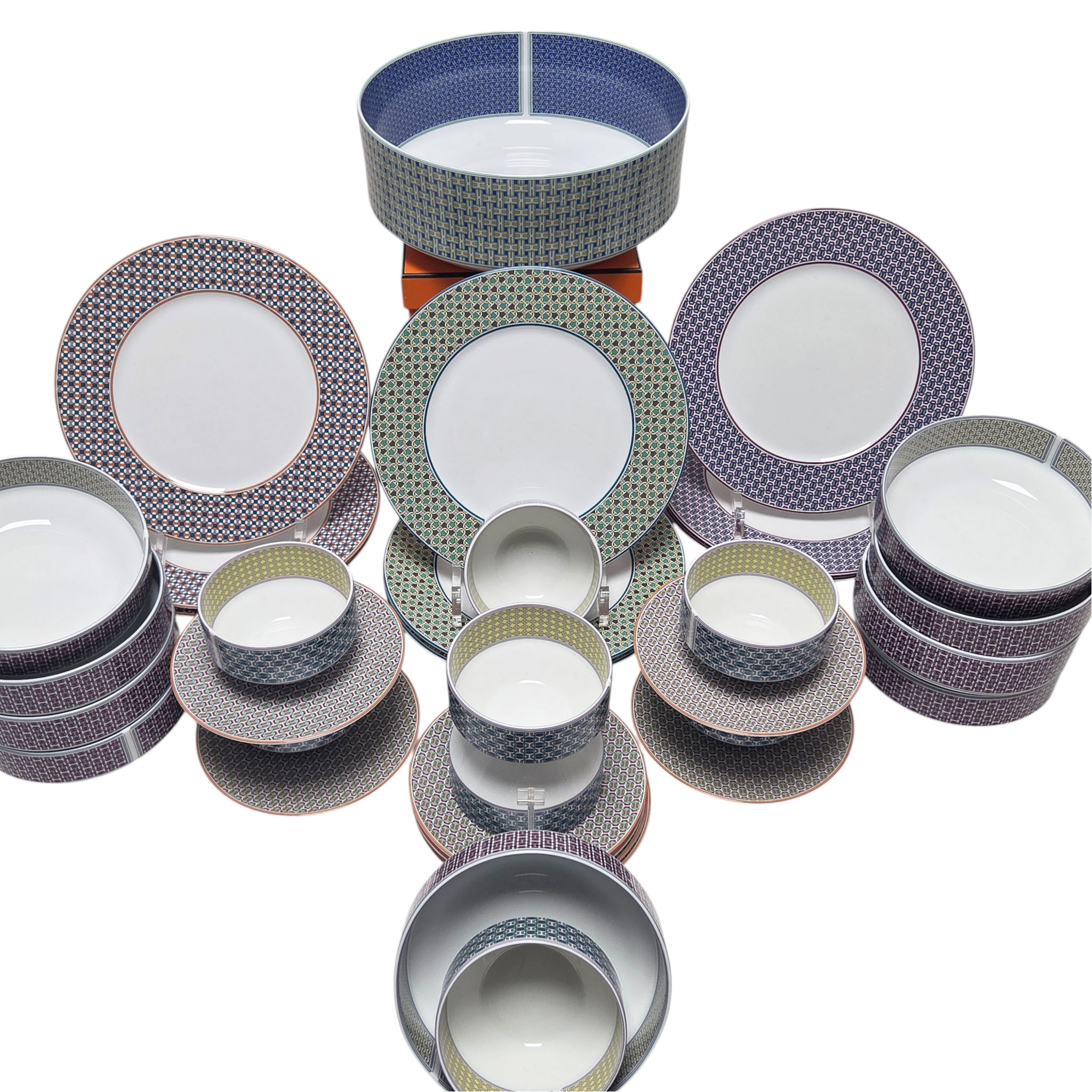 Rare ensemble en porcelaine, modèle Tie Set, maison Hermès Paris, 35 pièces.