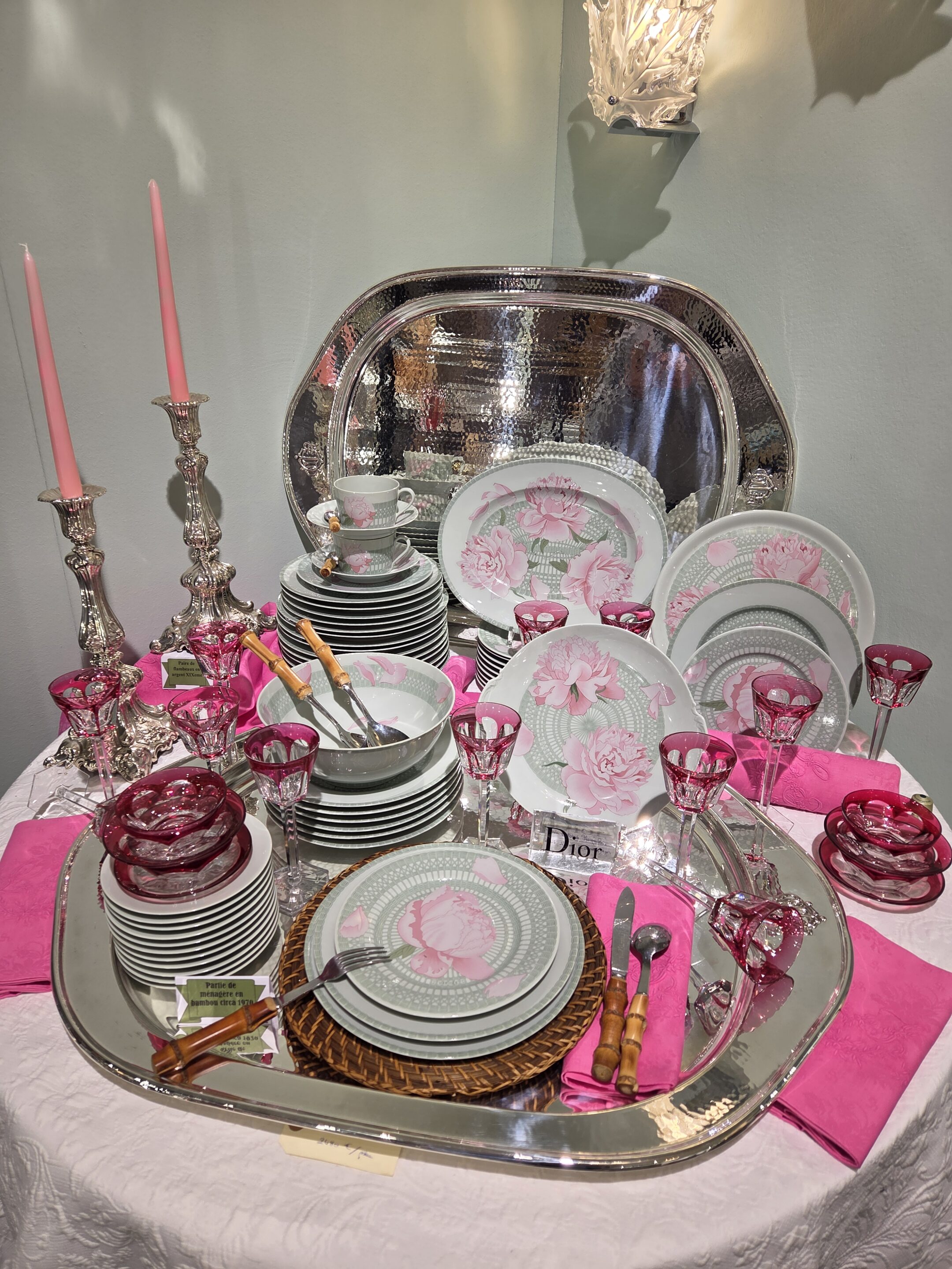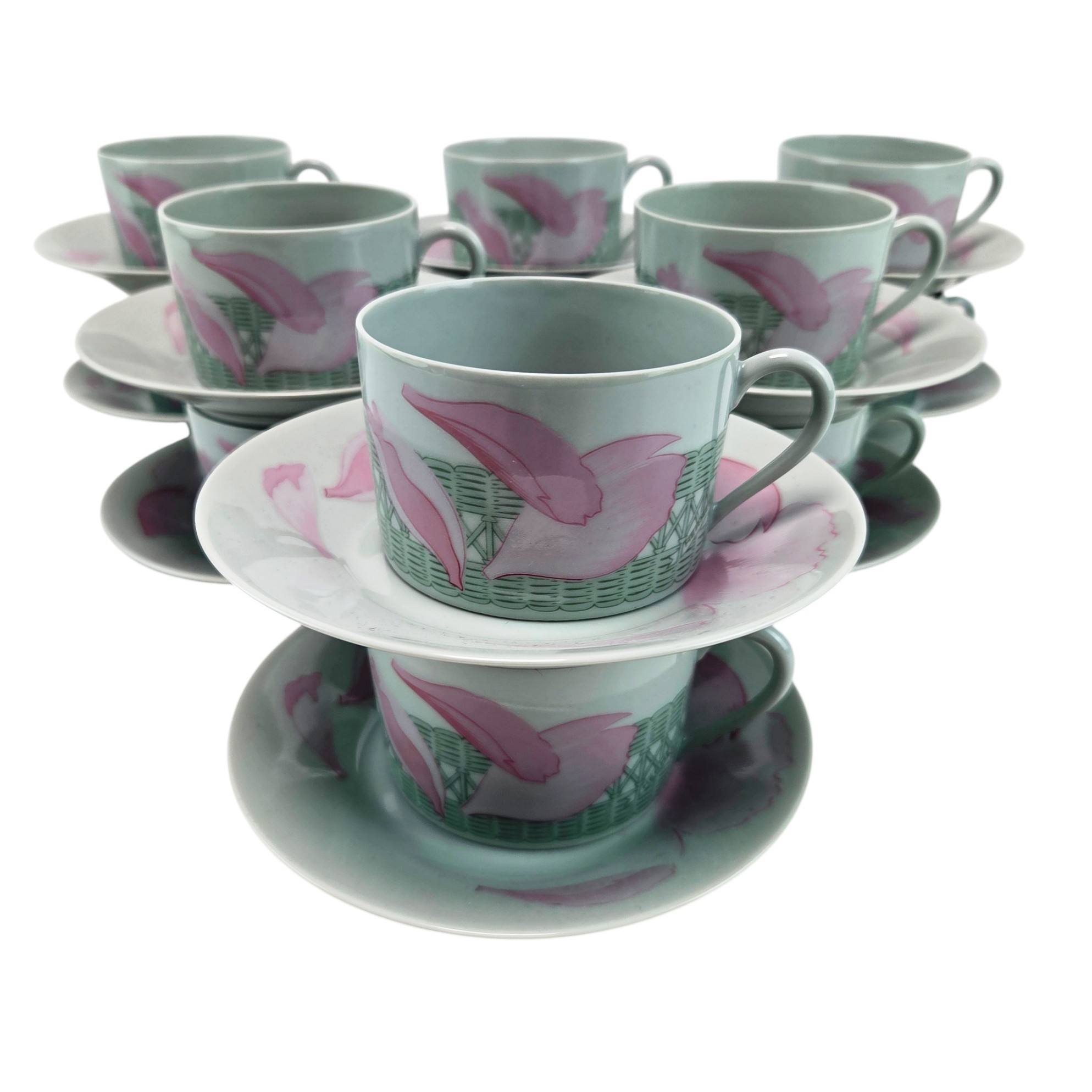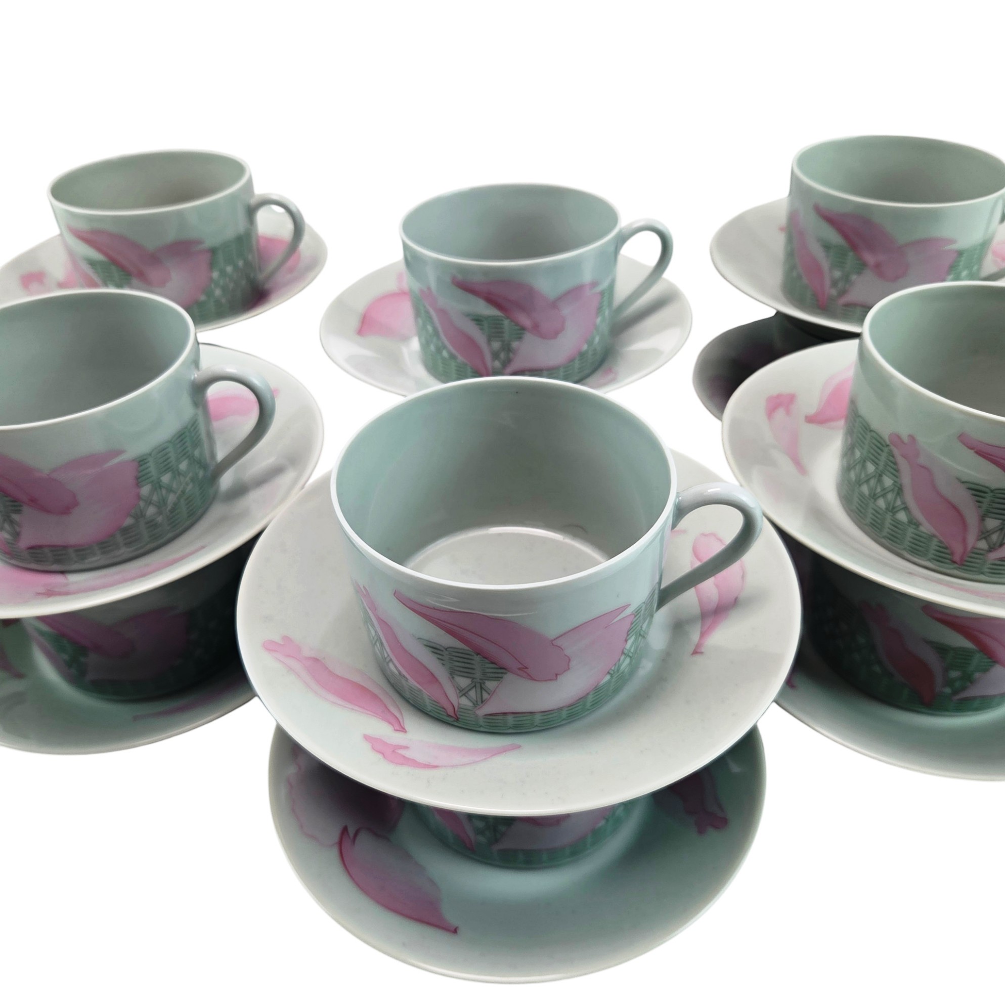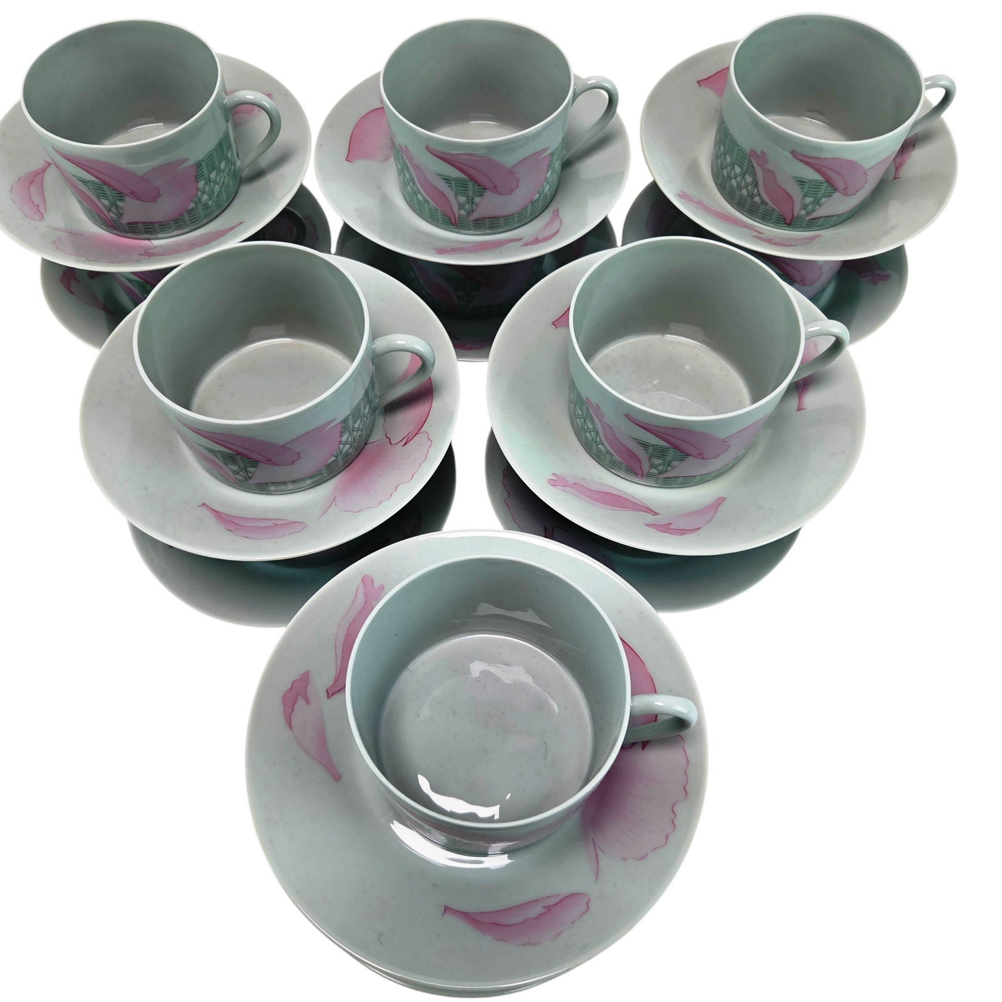 Rare service en porcelaine de Limoges, modèle Pivoines Céladon, maison Hermès, 80 pièces.