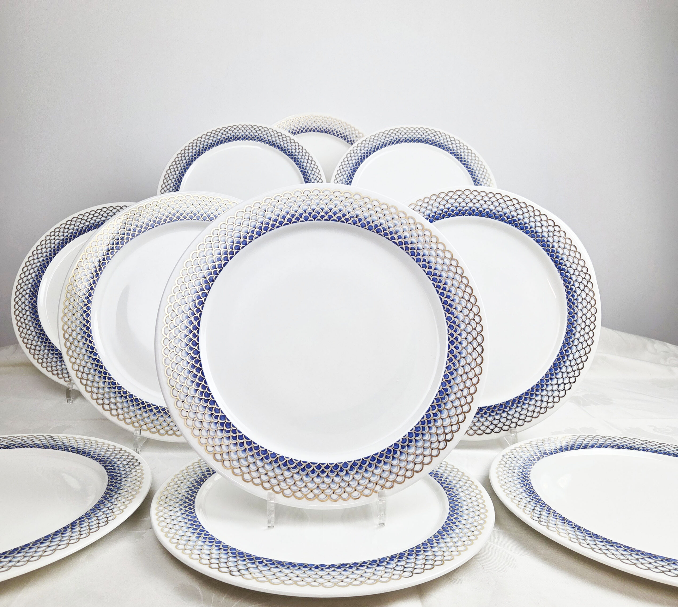 Suite de 12 assiettes à poisson en porcelaine Villeroy et Boch.