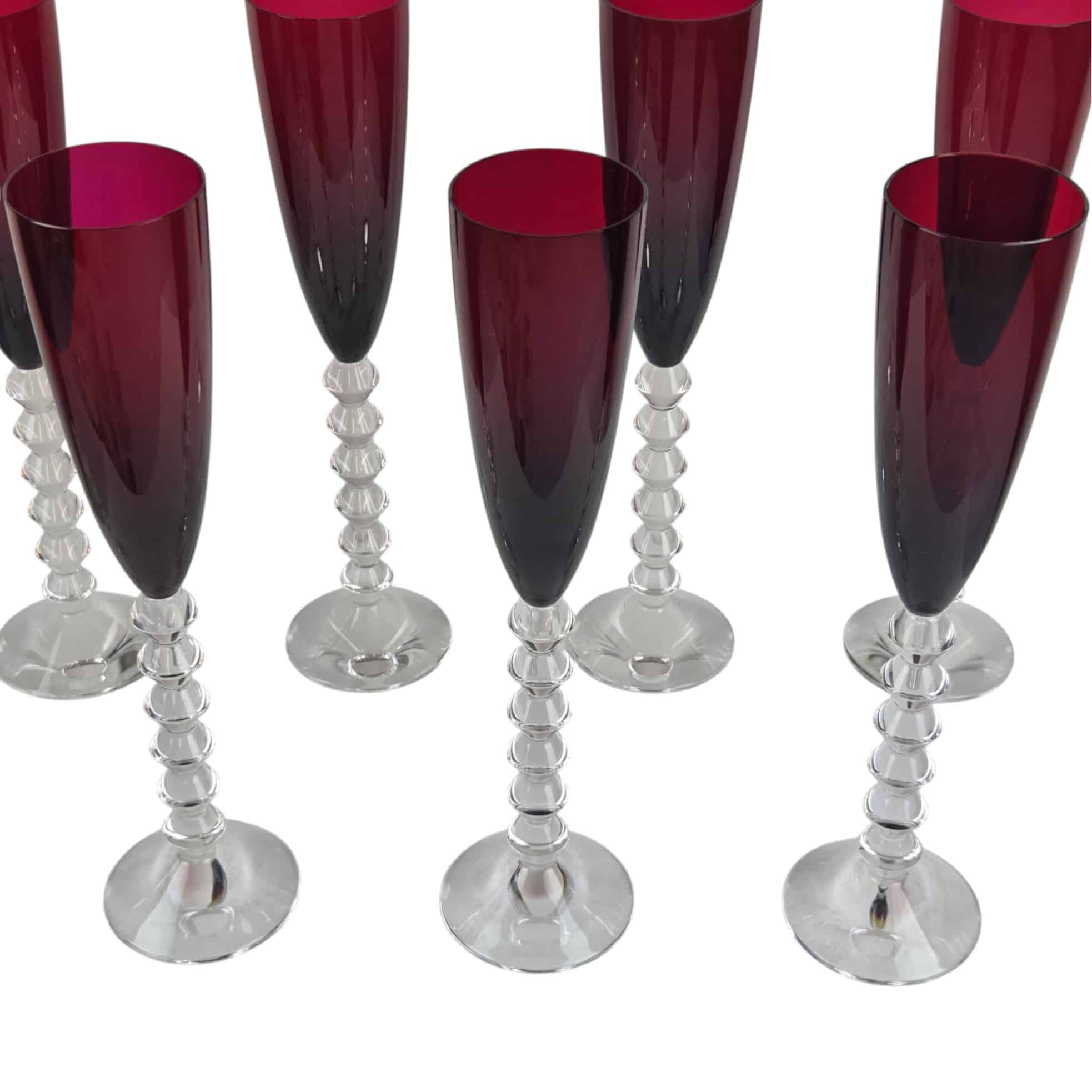 Suite de 8 flûtes en cristal de Baccarat Rubis, modèle Flutissimo Véga.